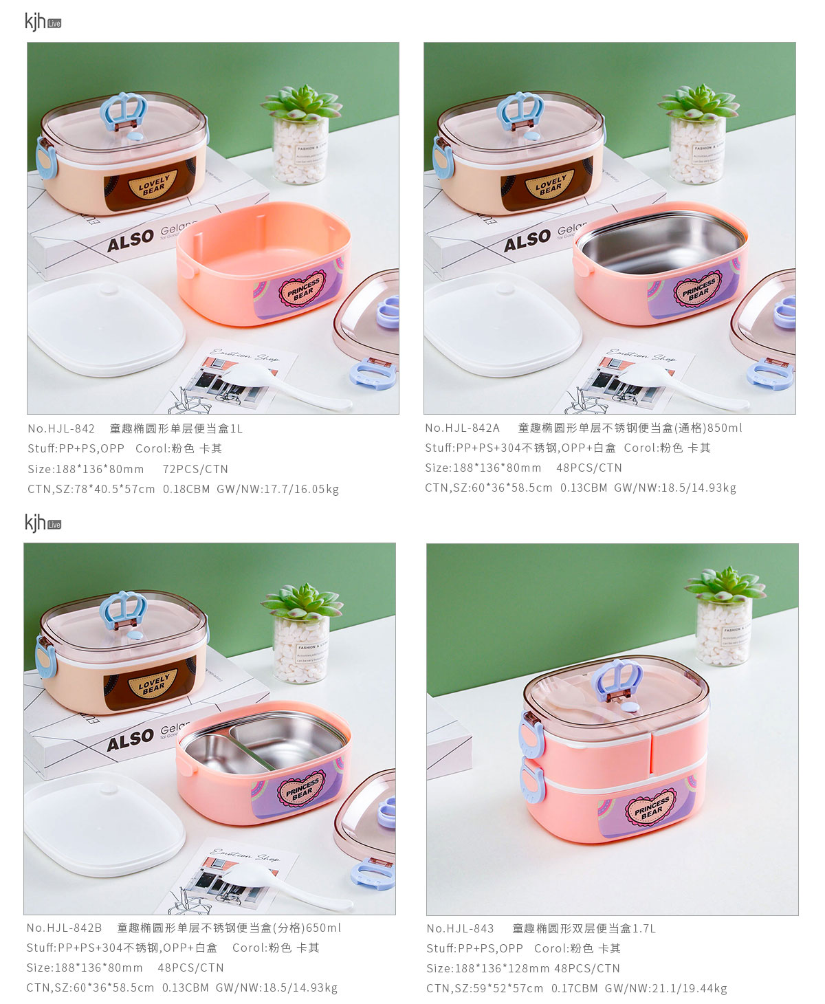 HJL-842A(單層不銹鋼通格):188*136*80mm/850ml