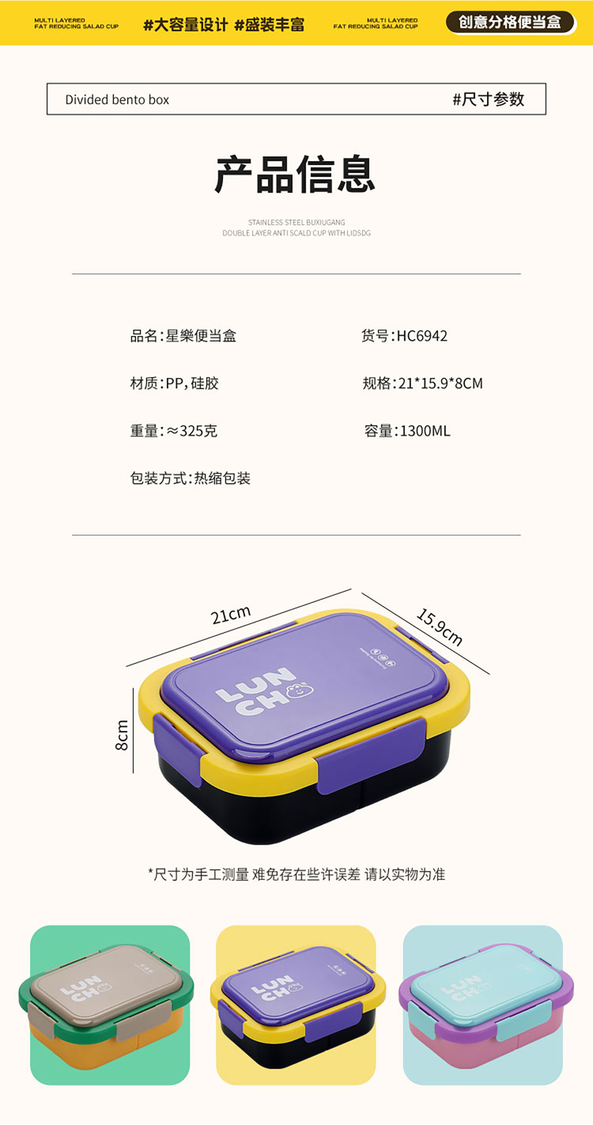 Size: 210*159*80mm/1300ml