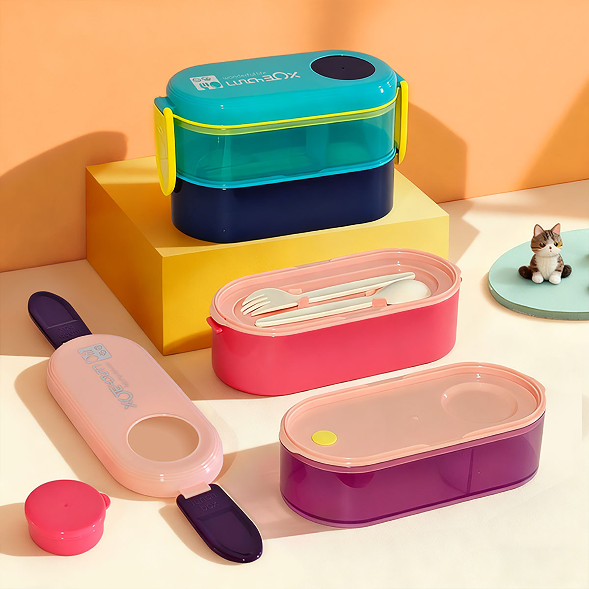 雙層便當(dāng)盒(帶硅膠)(900ML)